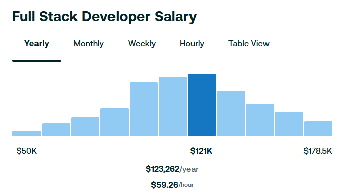 Full-stack devs who work on both frontend and backend tasks. The average salary for these is around $123,262 (with senior roles getting $200,000+)