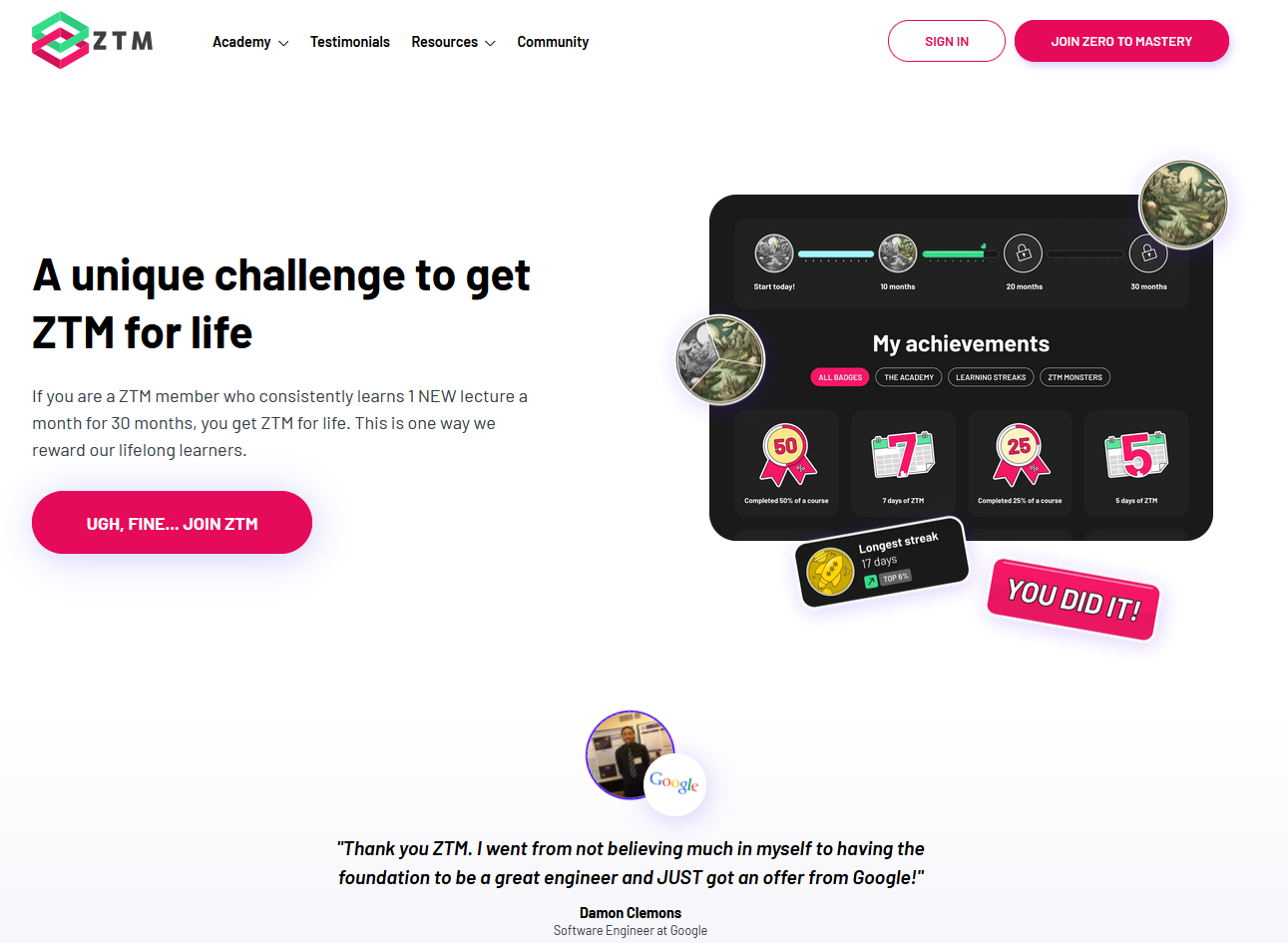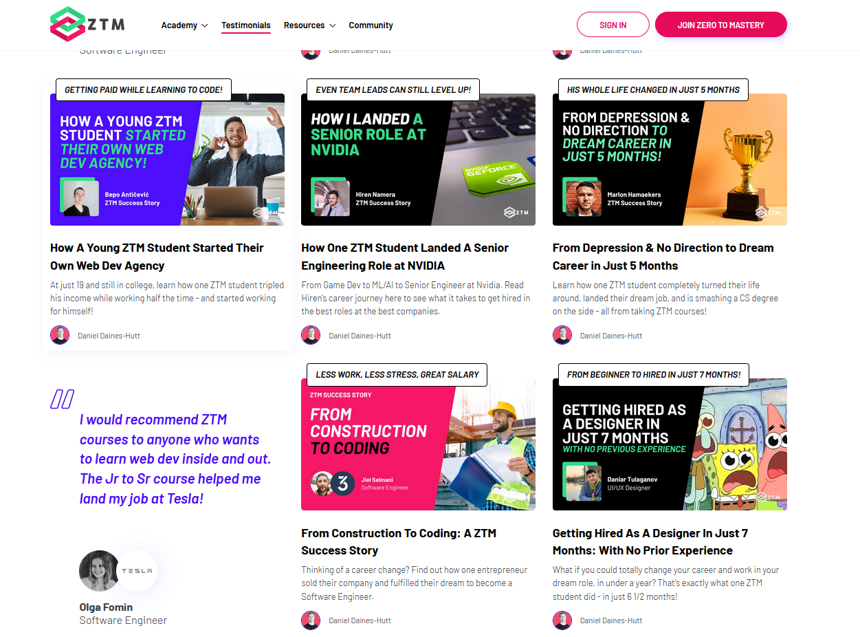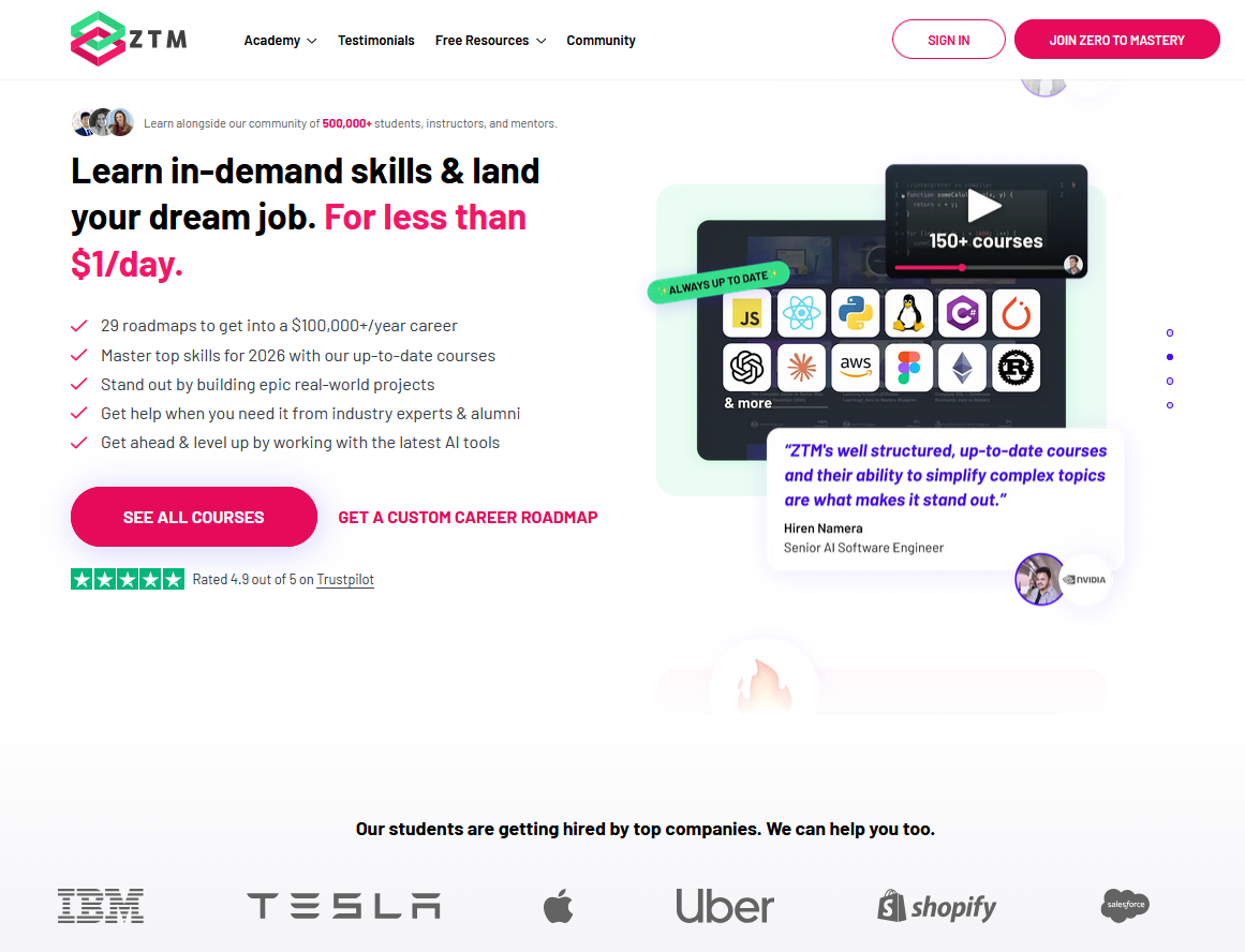 ZTM is my #1 recommendation if you’re looking to learn to code and get hired asap. That being said, we are ZTM so I can understand how you might think we’re slightly biased, but let me break down why I think we deserve this (along with a few customer reviews).