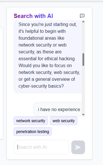 I kept telling it that I had no prior experience, but it still kept suggesting I should try some coding challenges, before finally narrowing down to beginner courses.