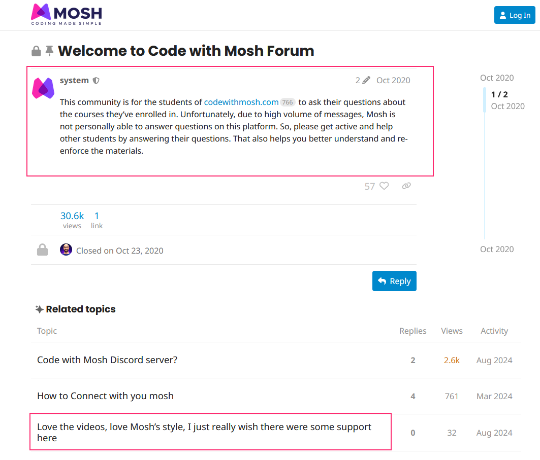 Less support than some other options. Due to the high demand (and low course cost), Mosh isn’t able to provide direct support. Instead, he fosters a community to help each other