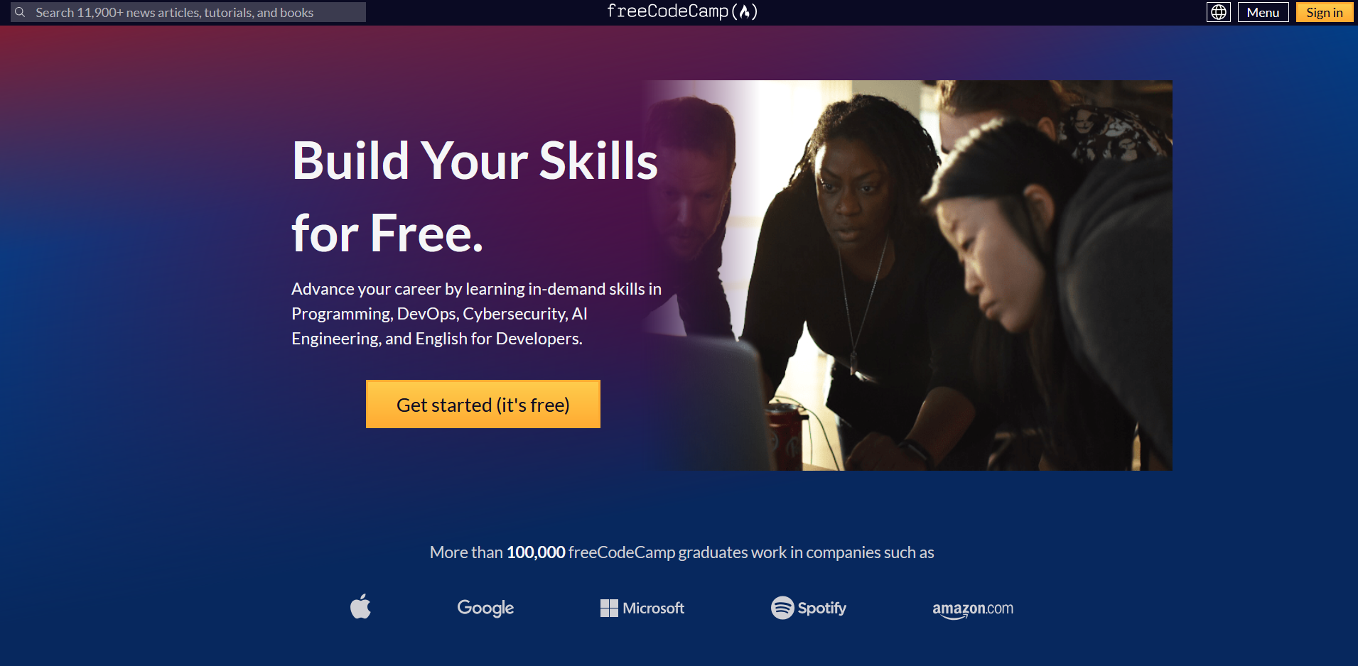 FreeCodeCamp is an open source, non-profit project, with courses covering a HUGE range of topics. That means it's 100% free, and my choice for the best free learning option.