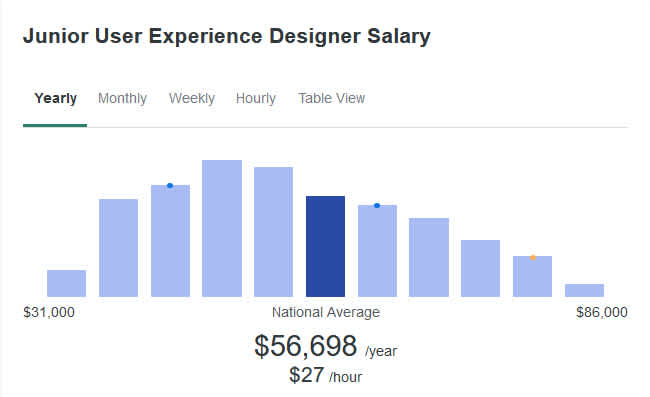 So almost 10k more than just a front-end junior web dev. Again though, this is average starting junior salary. Full-stack really pulls ahead in salary as you get more experienced also.
