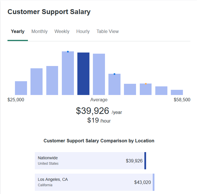 Because this is an entry-level role with no prior experience needed, the average salary for customer support roles in 2026 is around $39,926.
