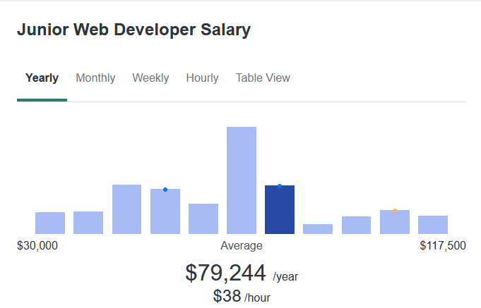 The average salary for a junior front-end Web Developer is around $79,224 right now.