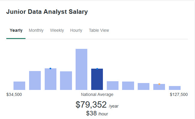 The average salary for a Junior Data Analyst is around $79,352.