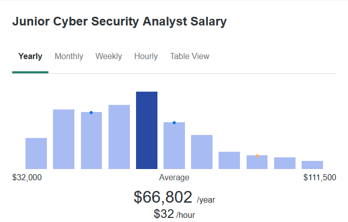 The salary for each of these roles can vary but is generally higher the more experience you get or the more you specialize. For example, a Senior Cyber Security Analyst earns around $113,704 a year on average.