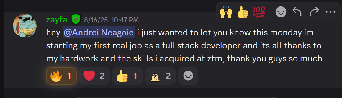 What advice would you give other students who may have been in your position and are now considering joining the ZTM Academy?