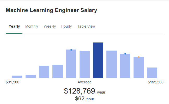 Average salary of jobs available: $101,752 (Bear in mind also that this is a fairly new field and pay and roles are increasing every year).