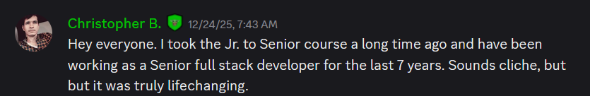 What if the skills you built were good enough to not just get hired, but to skip the entry-level rung entirely and land a Senior role right out of the gate? That's exactly what happened to one ZTM student. And eight years into that same role, he's never looked back.