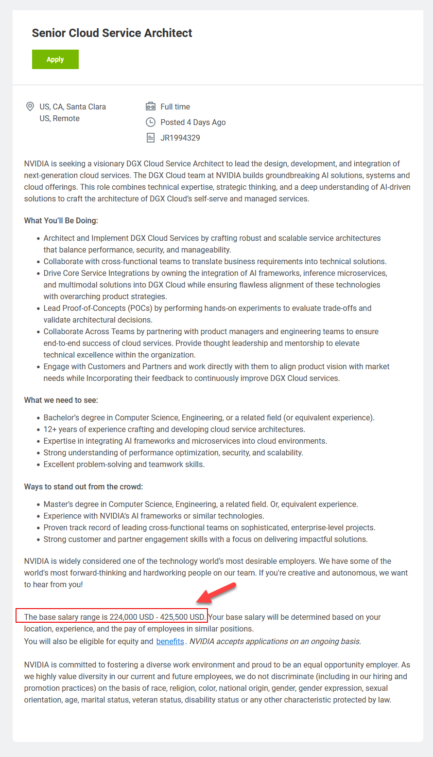 Base salary is between $224,000 and $425,500 based on experience, and that’s not to mention all the other benefits!