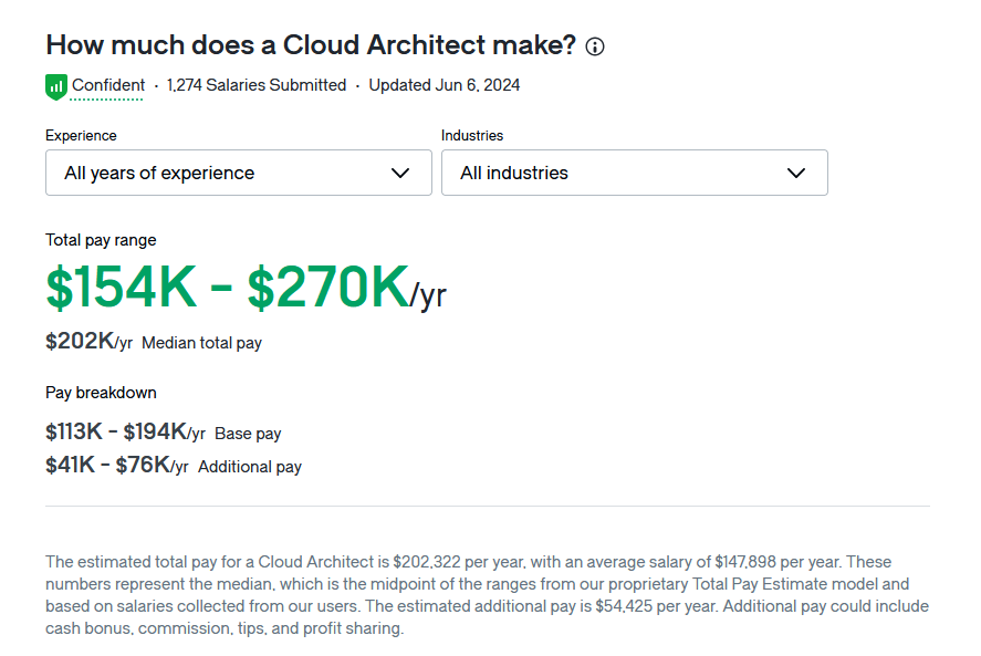 Now, obviously Cloud Architect salaries can vary based on factors like location, experience, and certifications, but this is definitely a high earning role.