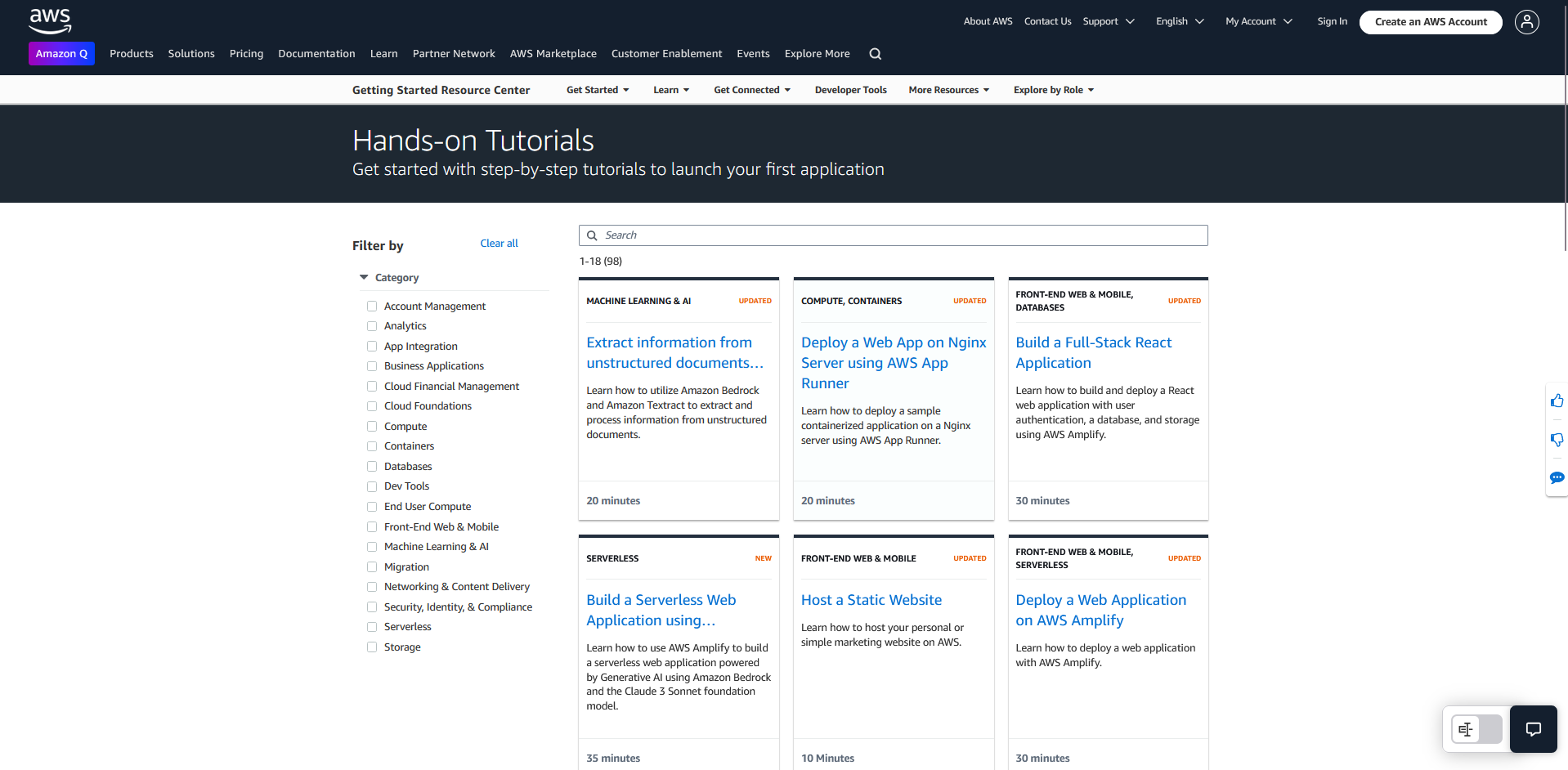 First off, Amazon offers tutorials for deploying web apps, setting up secure databases, and using serverless tools like AWS Lambda.