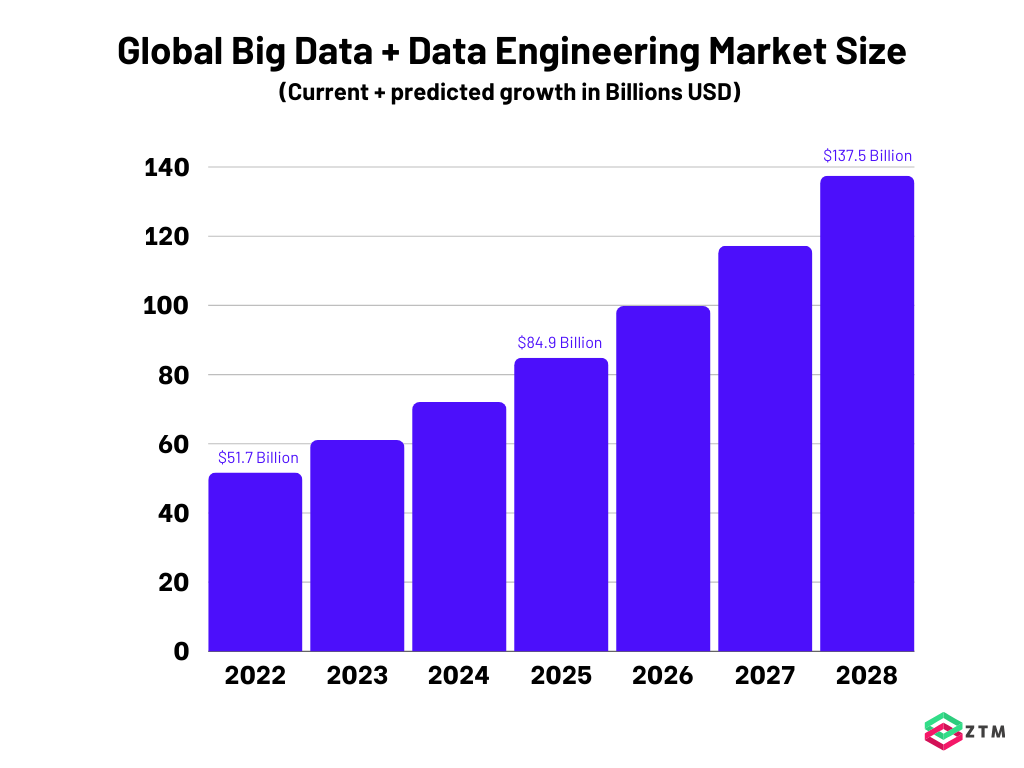 Yep. The global Big Data and Data Engineering Services market size is expected to expand at a CAGR of 18.15% during the forecast period, reaching $137.5 billion by 2028.