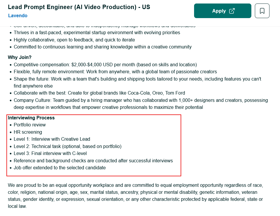 In fact, one of the jobs earlier even posted their application process information in the job listing that you can check out below: