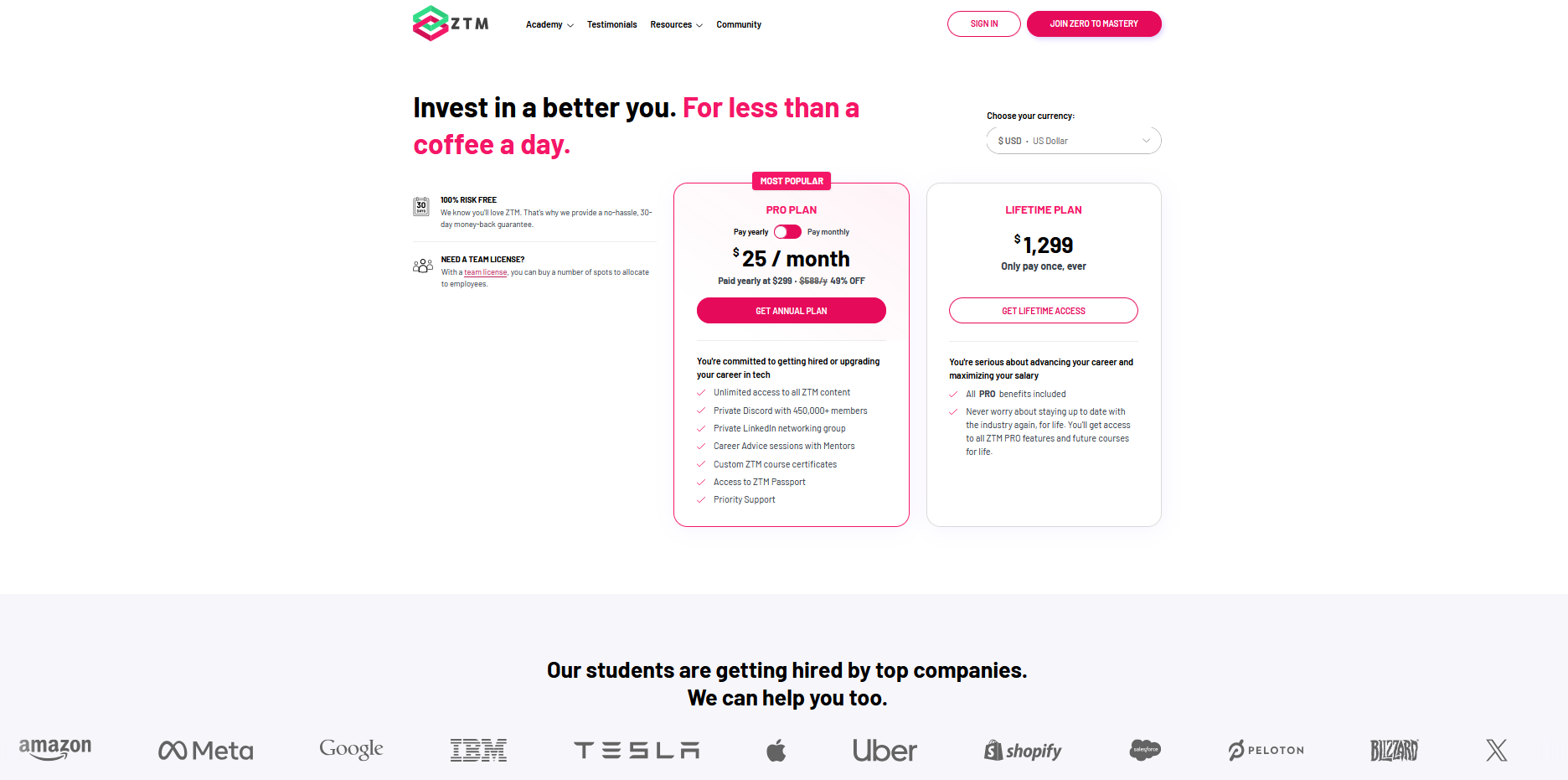 Here at Zero To Mastery, we have a few price options: