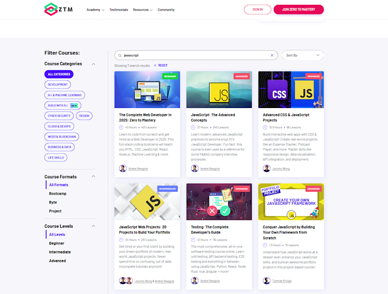 As a ZTM member, you get access to all these courses and more in a single membership.