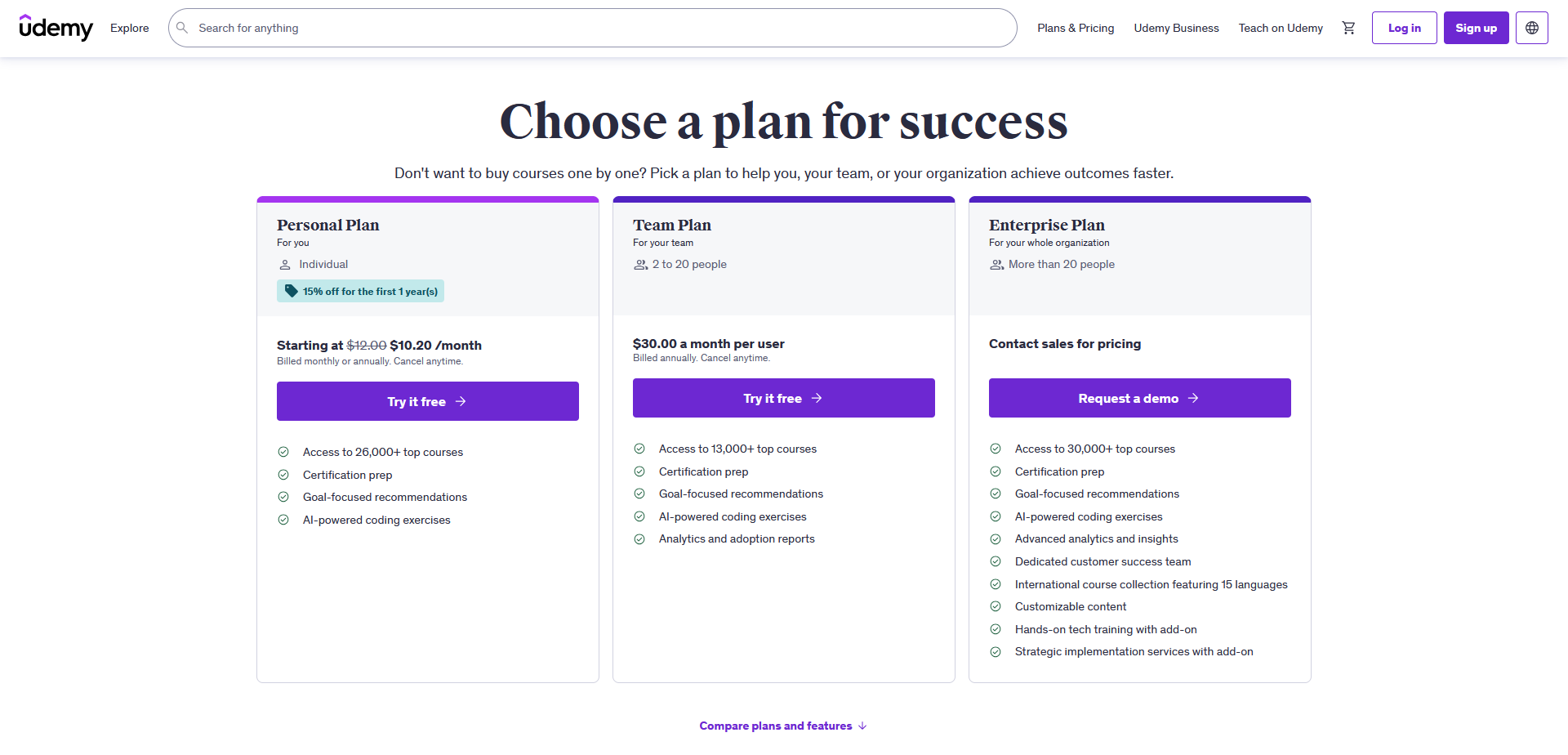 Feature | Pluralsight | Udemy | Zero To Mastery |