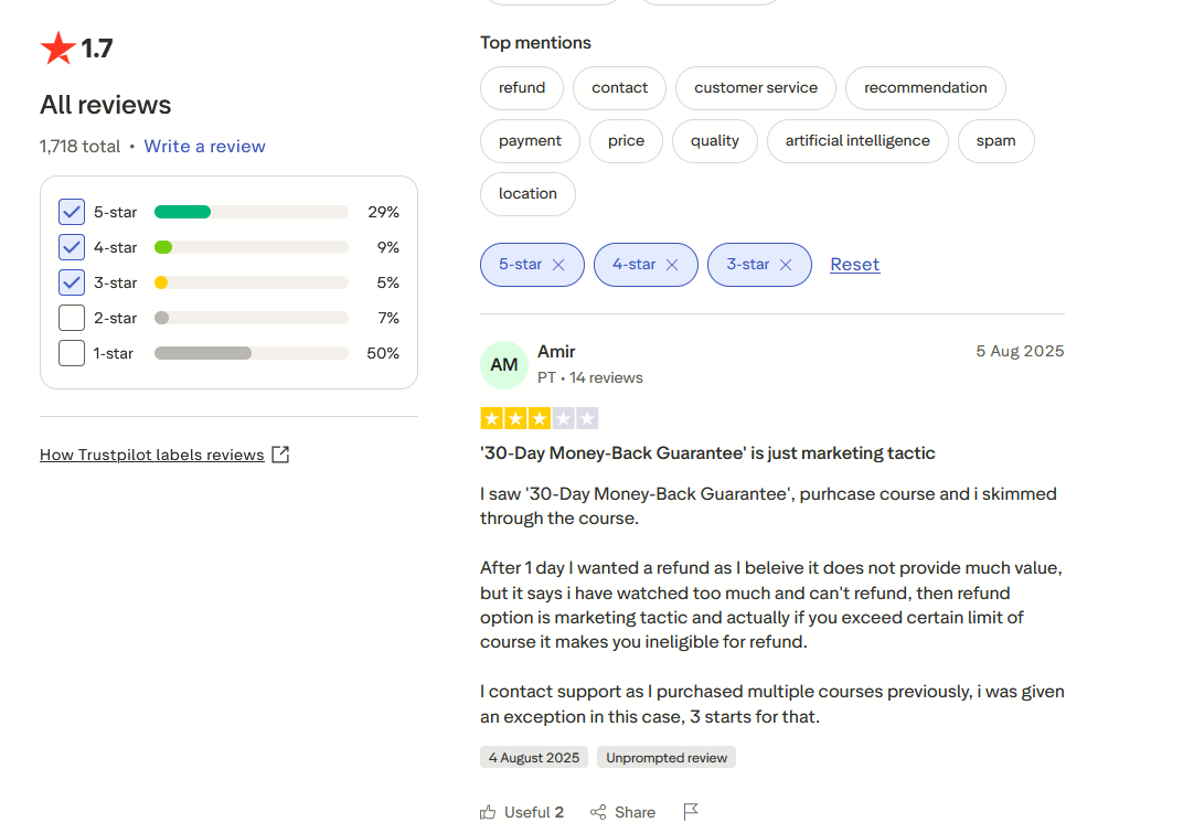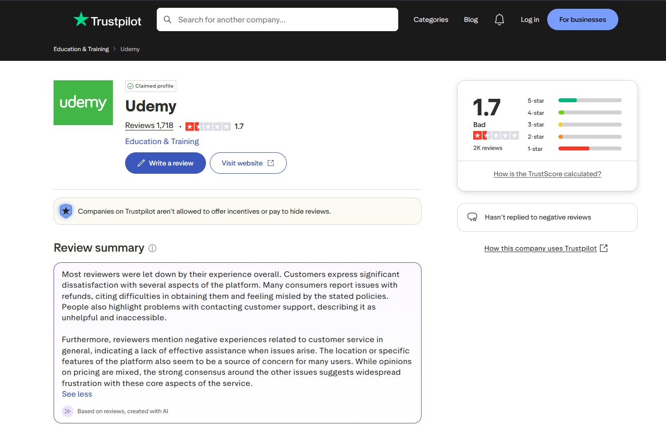 Udemy Trustpilot Reviews = 1.7... better-ish?