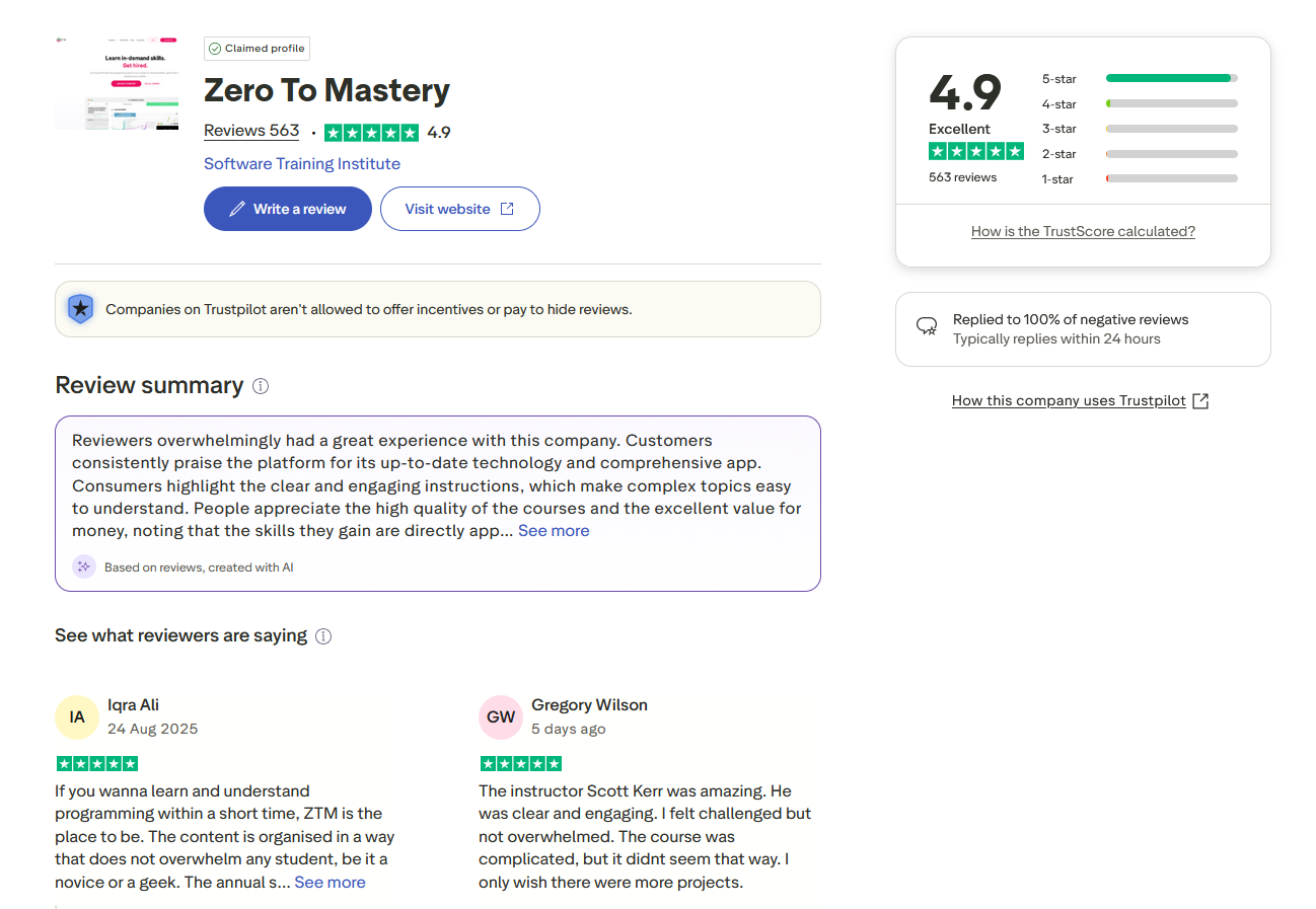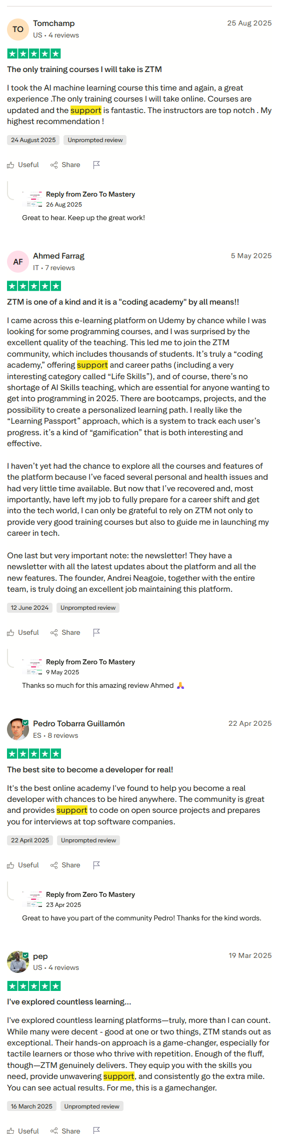 Zero To Mastery Trustpilot Reviews = 4.9... we ain't perfect but we're trying our best over here!