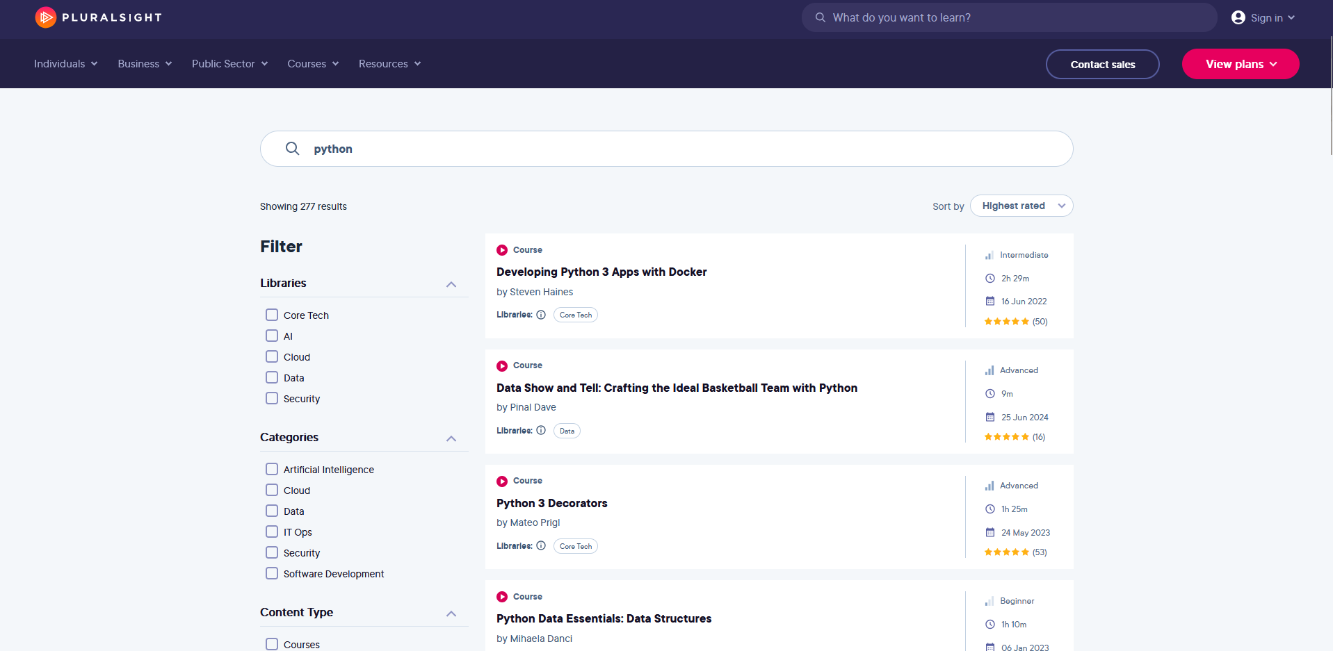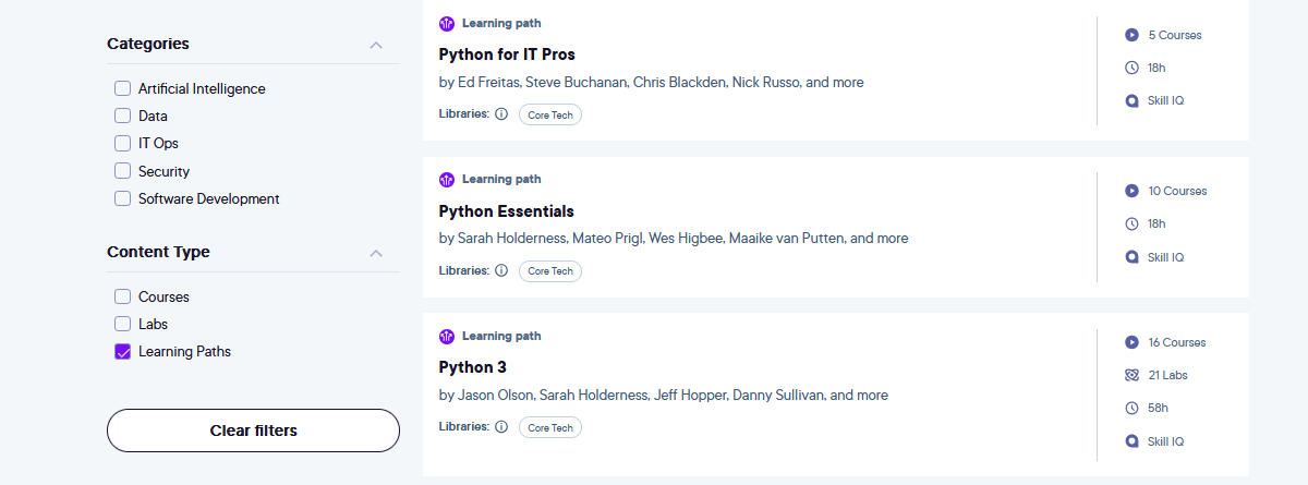 Pluralsight is a huge training platform with over 6,500 tech-focused courses! Obviously, this means you’re going to find pretty much anything you want.