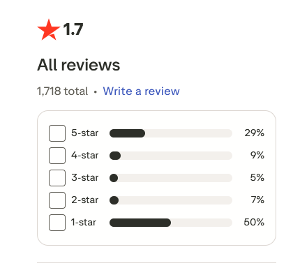 At the time of writing, Pluralsight is currently sitting at 1.3 out of 5 stars on TrustPilot.