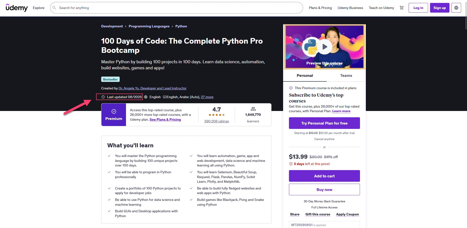 Many courses haven't been updated in a long time (I've noticed some from back in 2020). Given how fast the industry changes, this is a HUGE red flag when learning programming and other tech skills