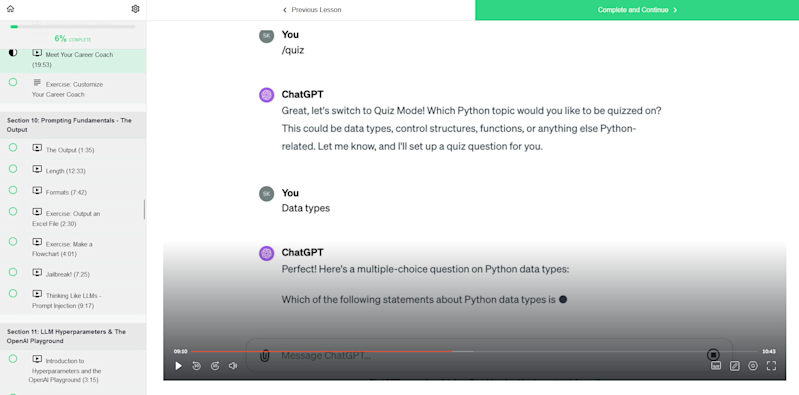 Oh and as an added bonus? I was feeling generous so I shared the first 5 hours of my 22+ hour Prompt Engineering Bootcamp course over on the ZTM Youtube channel.