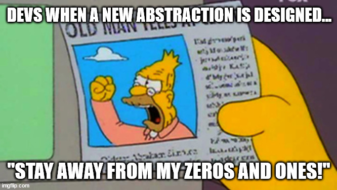 As you can see, each step on this path is another step further away from the machine code. However, one of the defining concepts each time is that each level of abstraction allows you to greatly simplify tasks, because you can simply use more natural language (i.e. English) to code, which is then compiled down.
