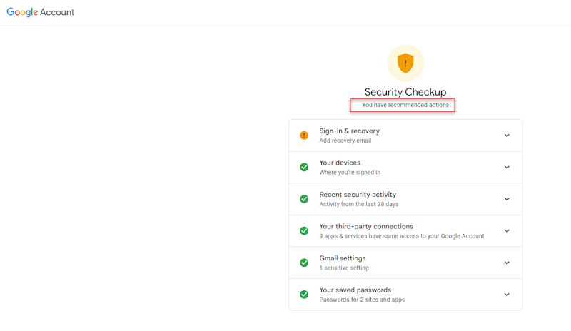 For Google: Google Security Checkup