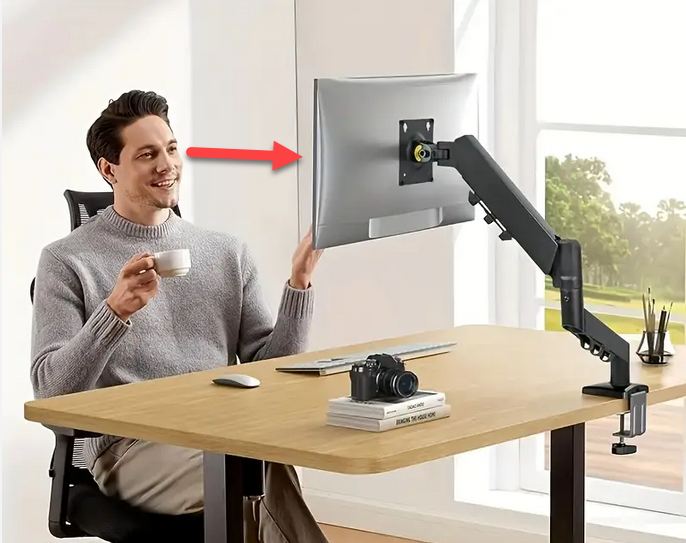 (Note that the monitor is the right height but the desk is too high for their arms, but you get the idea).