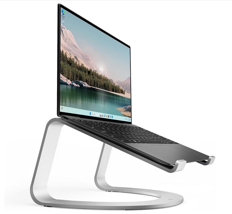 If you’re using a work laptop, I recommend grabbing a stand to place your laptop on so that you can raise the screen to eye level on your desk, as well as a separate keyboard so you can keep that at waist height and type on.