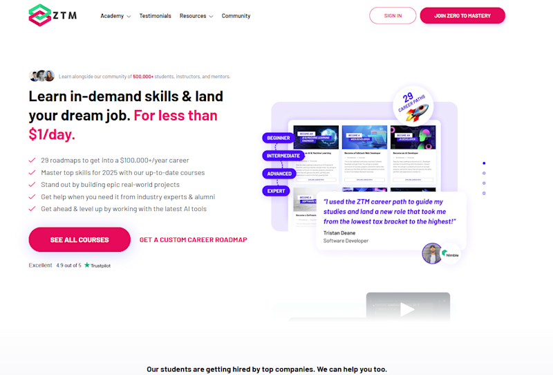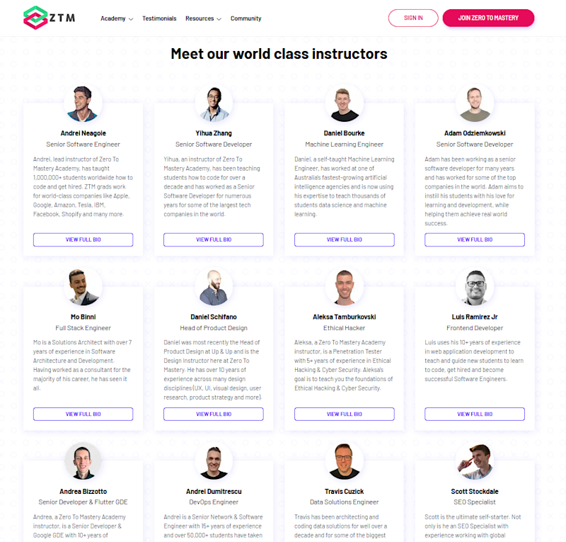 ZTM is my #1 recommendation if you’re looking to learn to code and get hired asap. That being said, we are ZTM so I can understand how you might think we’re slightly biased, but let me break down why I think we deserve this (along with a few customer reviews).