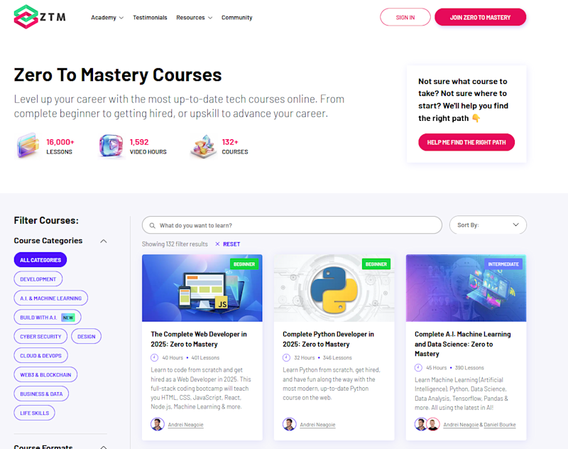 ⭐ Best for beginners who want to get hired ASAP: Zero To Mastery