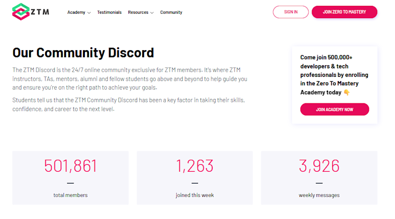 A huge factor in being able to stick to a goal and learn something new is being able to get support and have people around you. This is why we have an incredibly active and supportive community, with a private Discord server with over 500,000 members.