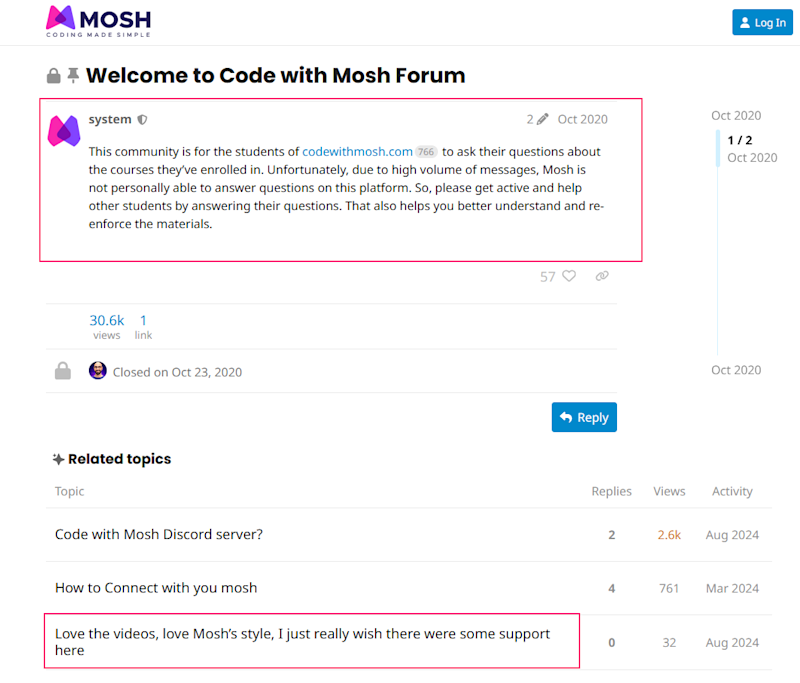 Less support than some other options. Due to the high demand (and low course cost), Mosh isn’t able to provide direct support. Instead, he fosters a community to help each other