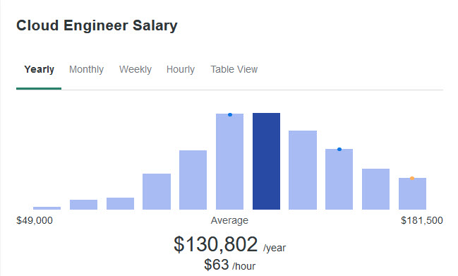 For the highest average salary among in-demand roles, Cloud Engineers lead the pack at $131,000 per year.