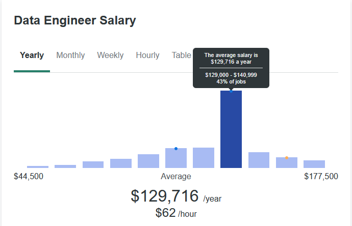 Data Engineer: $129,716 per year