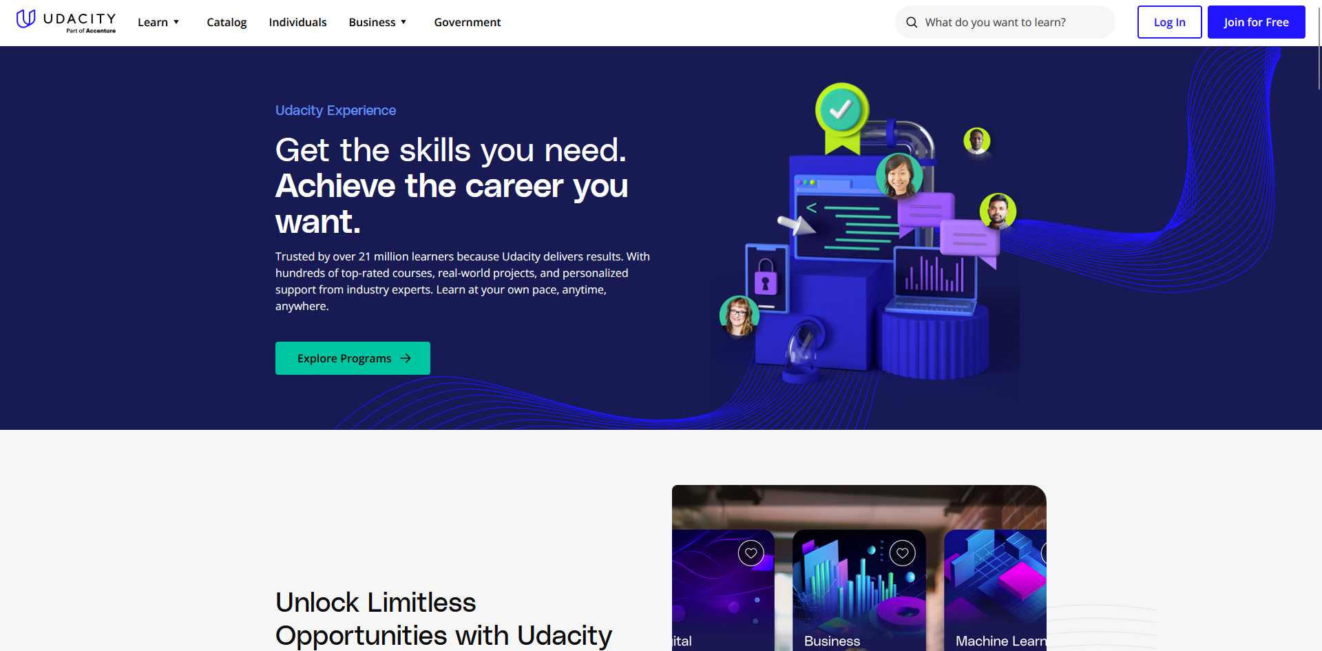 With over 21 million students, Udacity is a huge training platform with a wide variety of tech training courses.